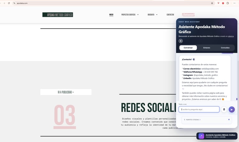 Chatbot con IA en página web de ApodaKa Diseño Gráfico