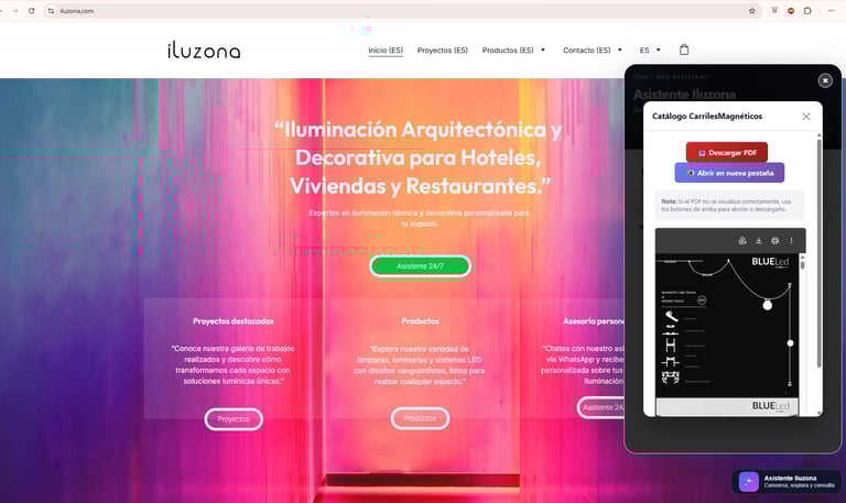 Chatbot con IA en página web Iluzona Iluminación