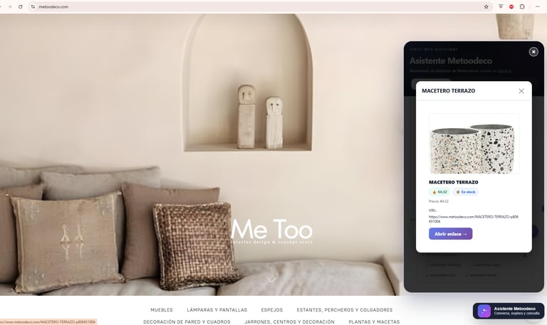 Chatbot con IA en página web Meetoo Interiorismo